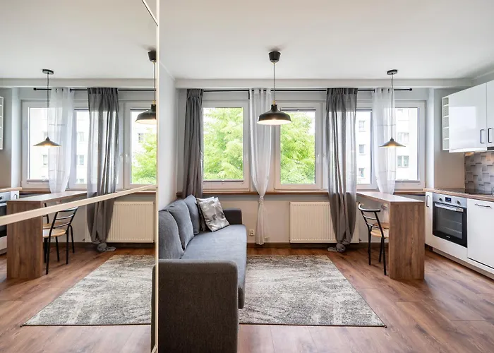 Das 25 m^2 große 12 Gdynia Centrum - Apartament Mieszkanie Dla 2 Os liegt im Bezirk Śródmieście von Gdynia und bietet einen Blick auf die Stadt. Pier von Orłowo ist auch nur 4 km von diesem Apartment entfernt gelegen.
